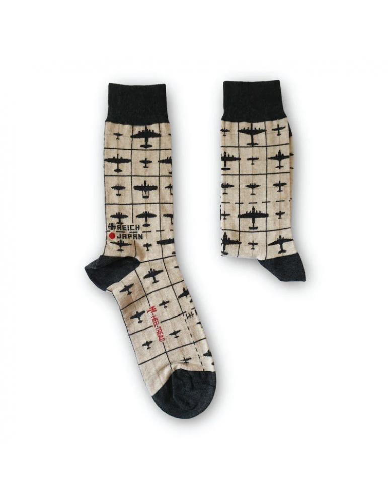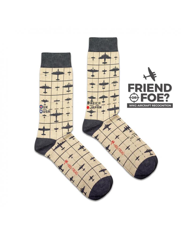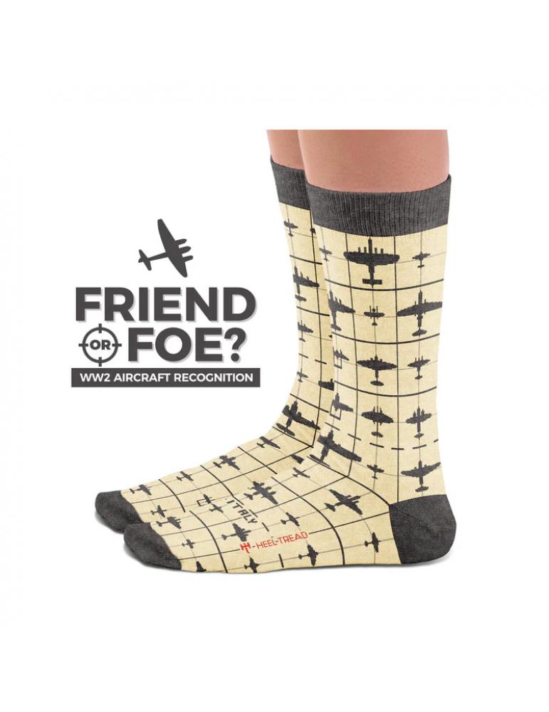 Inspiré des cartes de reconnaissance des avions de la Seconde Guerre mondiale, ce duo de chaussettes rend hommage à l'un des outils les plus essentiels de la guerre aérienne : la capacité à distinguer un ennemi d'un allié d'un seul coup d'œil. Arborant des silhouettes emblématiques des forces de l'Axe et des Alliés sur chaque paire, ces chaussettes transforment l'histoire en œuvre d'art. Des motifs monochromes pour les passionnés d'aviation, les passionnés d'histoire et tous ceux qui apprécient les designs chargés d'histoire.