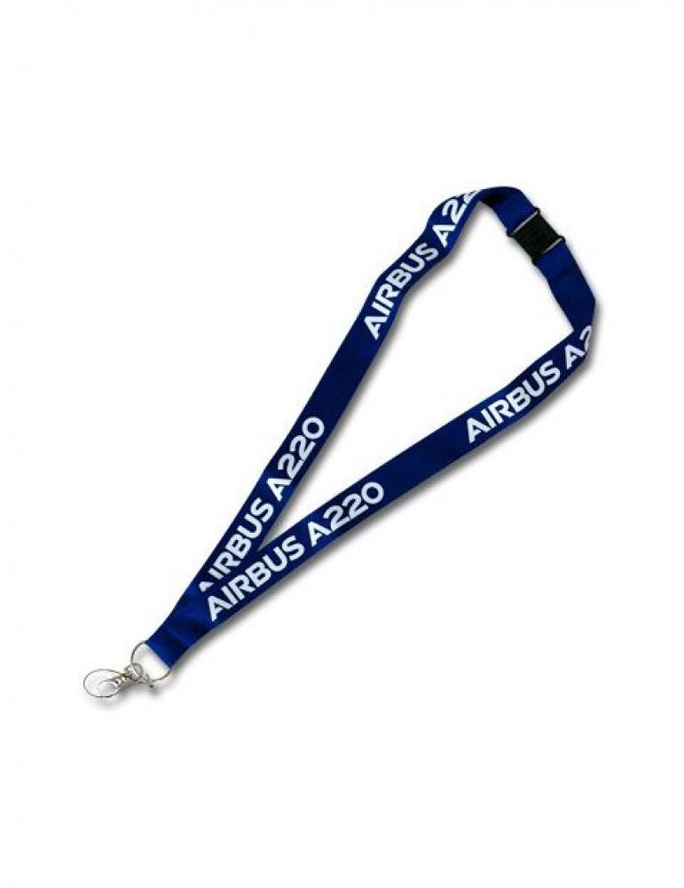 Tour de cou porte badge Airbus A220 avec mousqueton et dragone.
