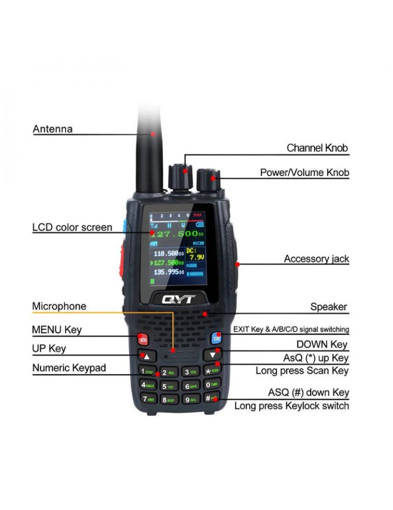 Radio VHF KT-A16 QYT bande aviation émission et réception 118-136 Mhz.
