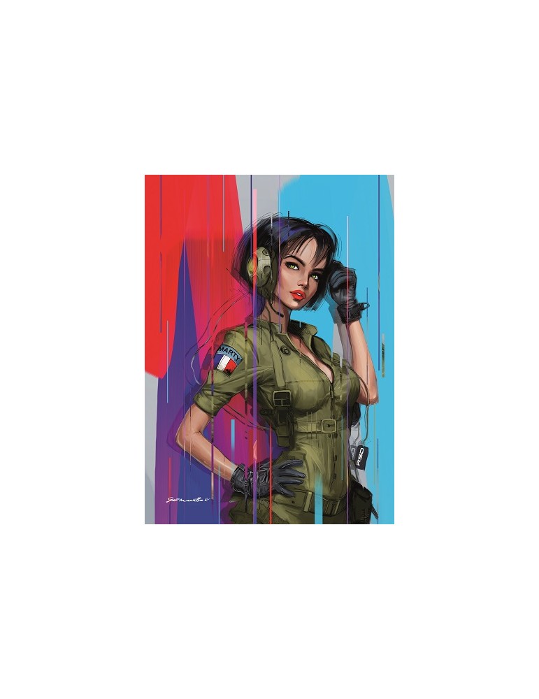 Reproduction de la série Pin up réalisée par l'artiste peintre de l'air et de l'espace Gio Manetta pour JG "Marty" Martinez, pilote de chasse et démonstrateur Rafale solo display 2017.